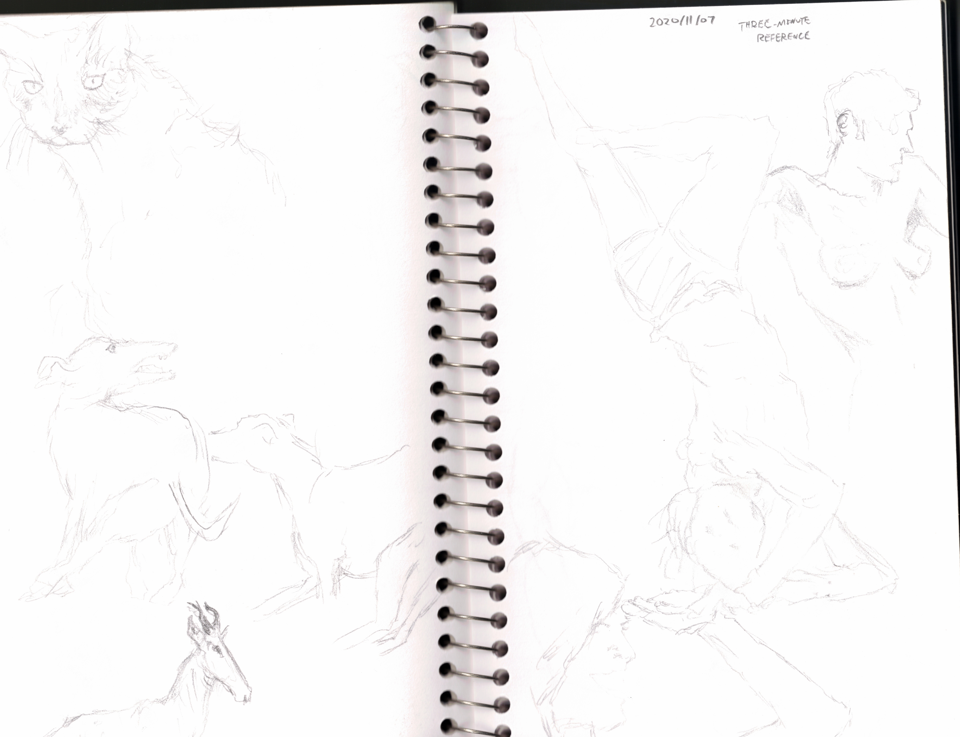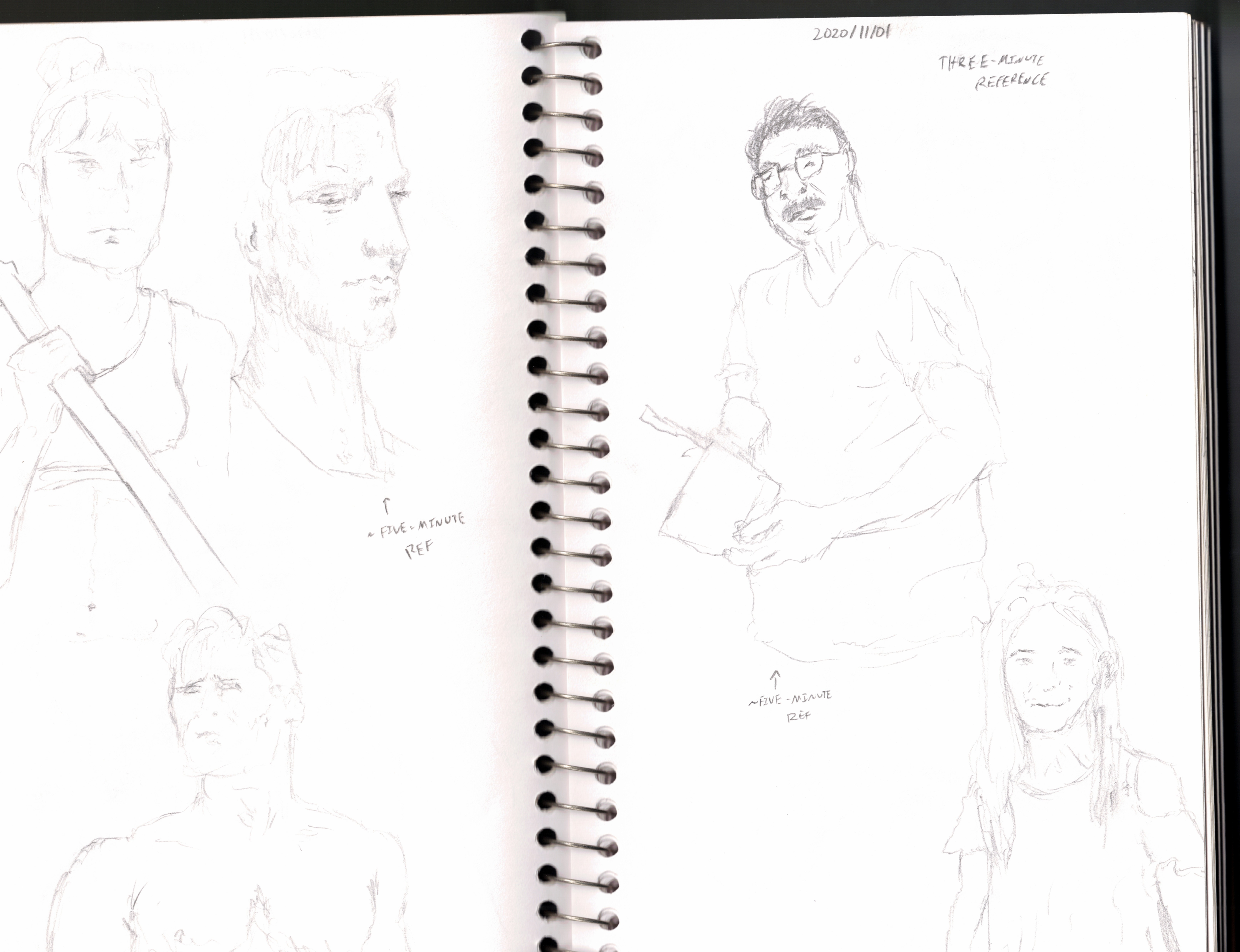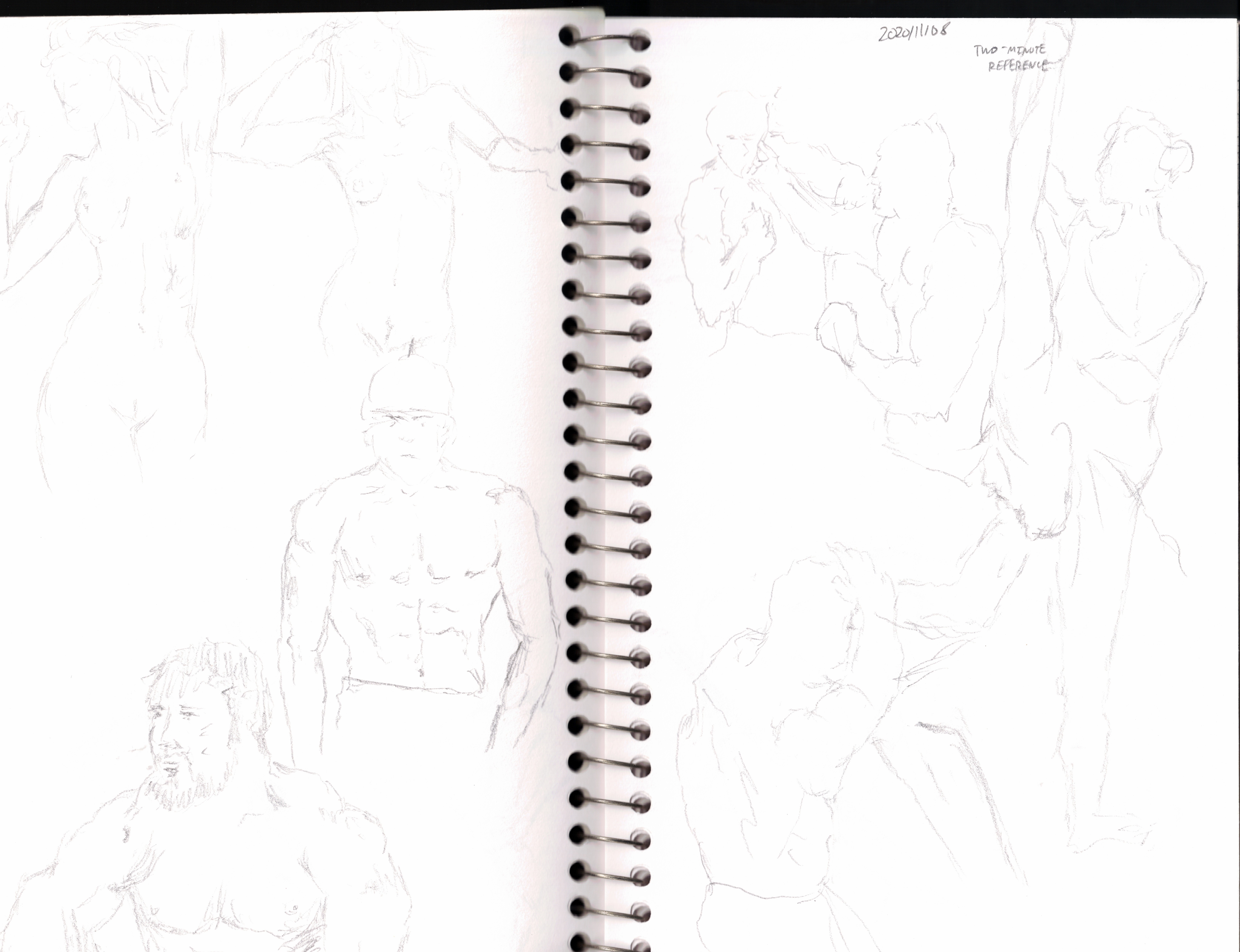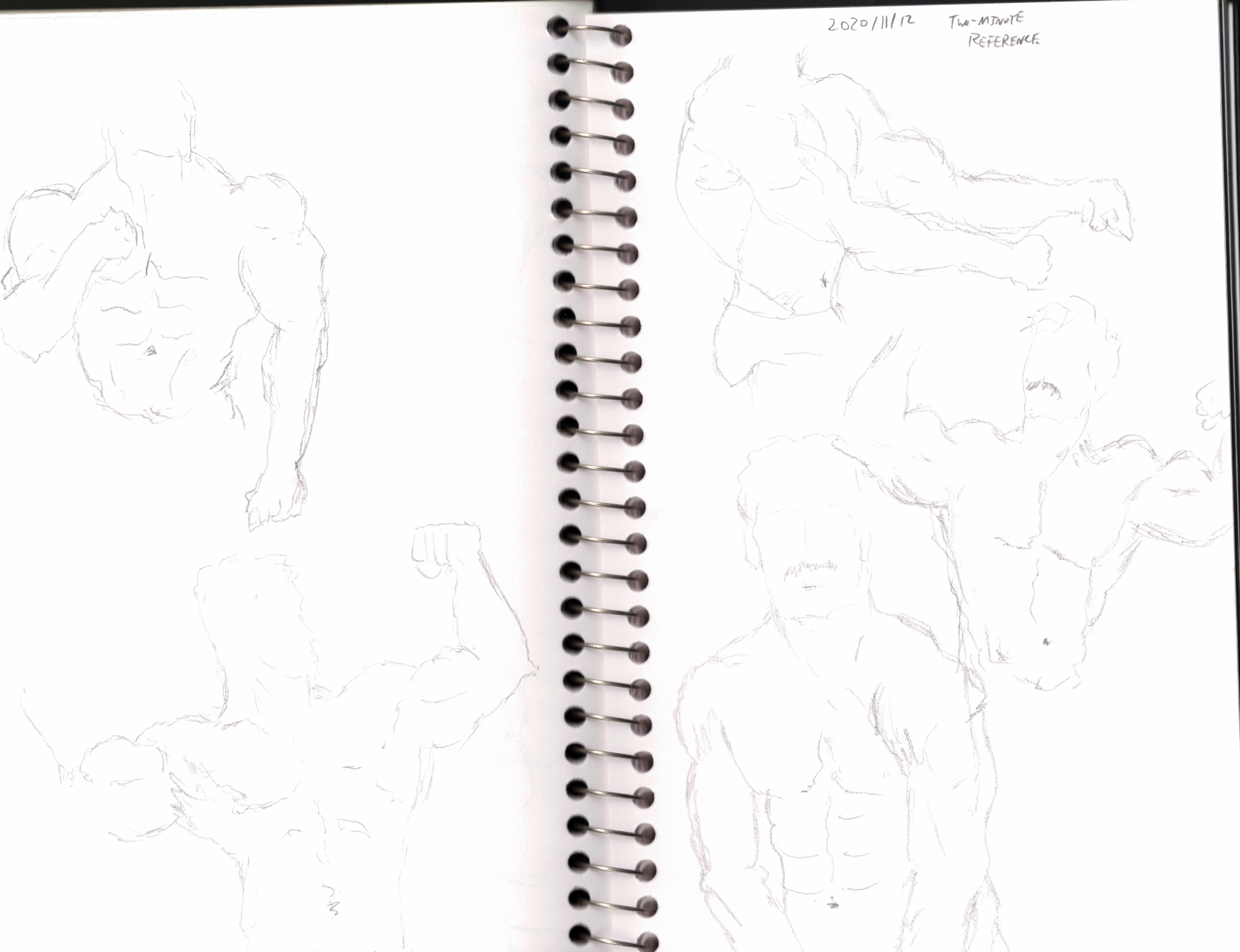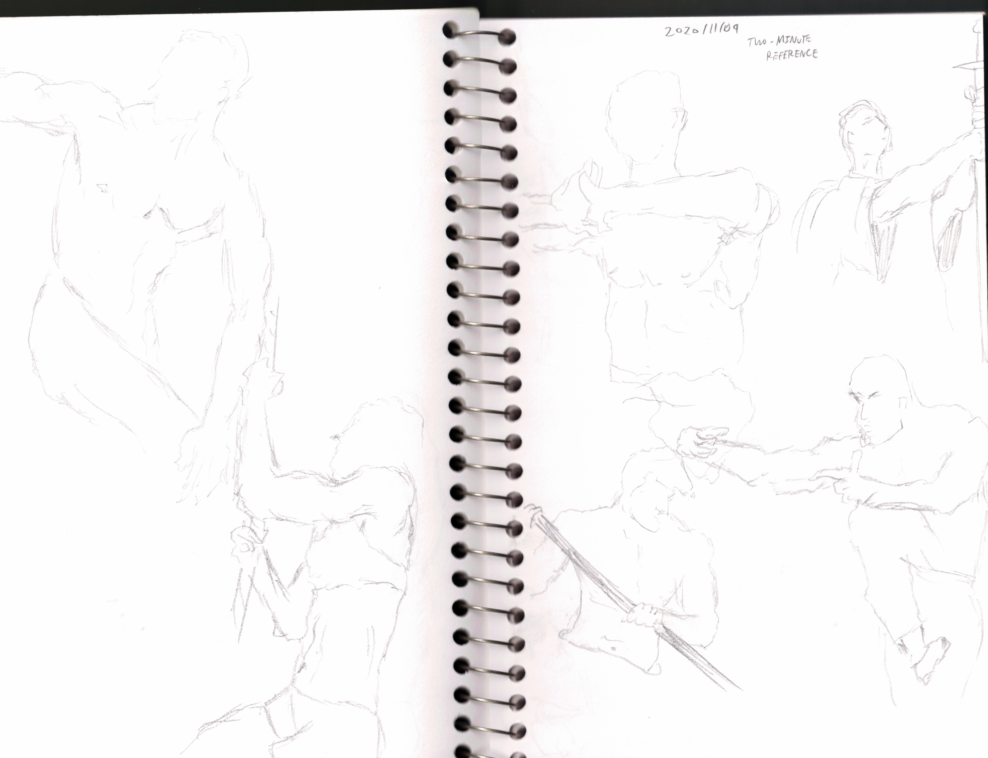 I did a lot of 1-3 minute reference sketching this year; basically, you draw as fast as you can given the time limit.